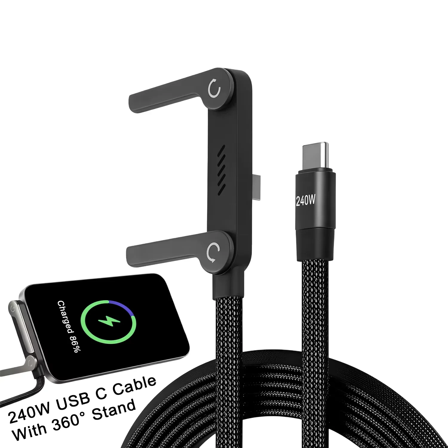 240 وات (من النوع c إلى النوع c)، يتضمن حامل وكابل شحن سريع